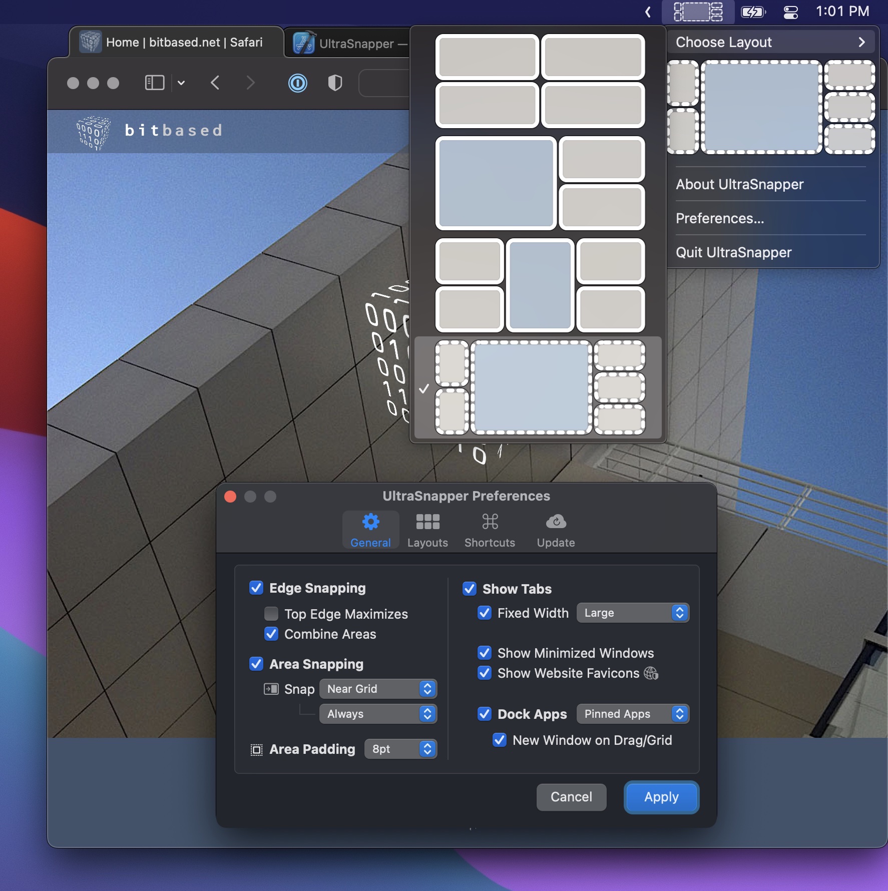 Tabbed window snapping for macOS, a must have for ultra-wide monitors